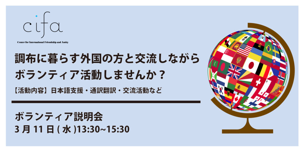 cifa 公益財団法人調布市文化・コミュニティ振興財団 国際交流センター 042-441-6195 cifaメールアドレス