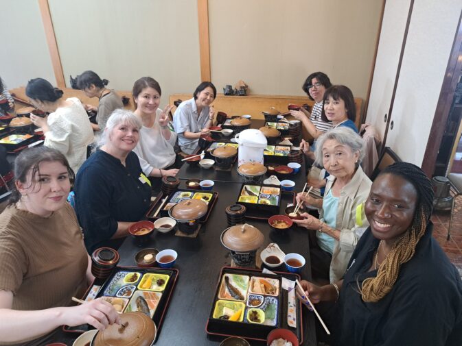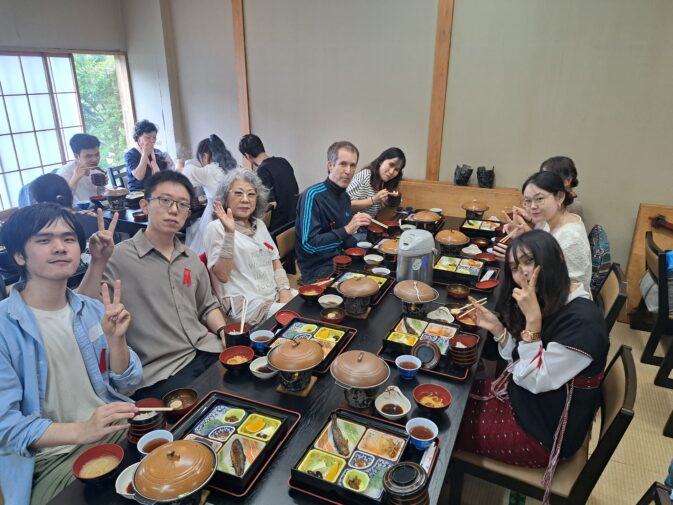 典型的な和食スタイルで、参加者は思い思いの品から味わい、会話を楽しみながら、おいしくいただきました。